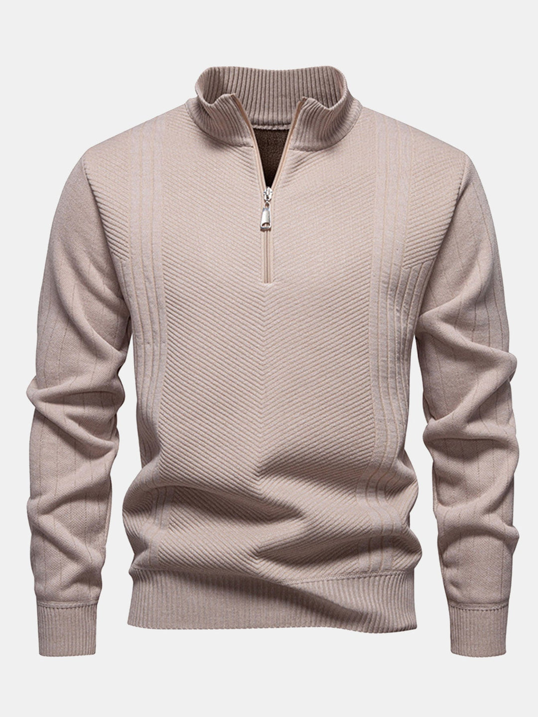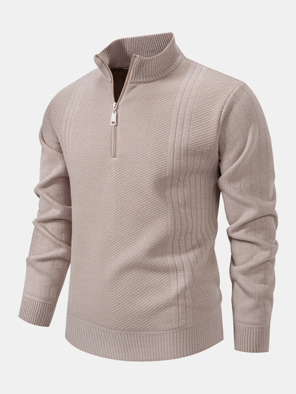 Suéter de Punto Jacquard Retorcido con Cremallera de un Cuarto
