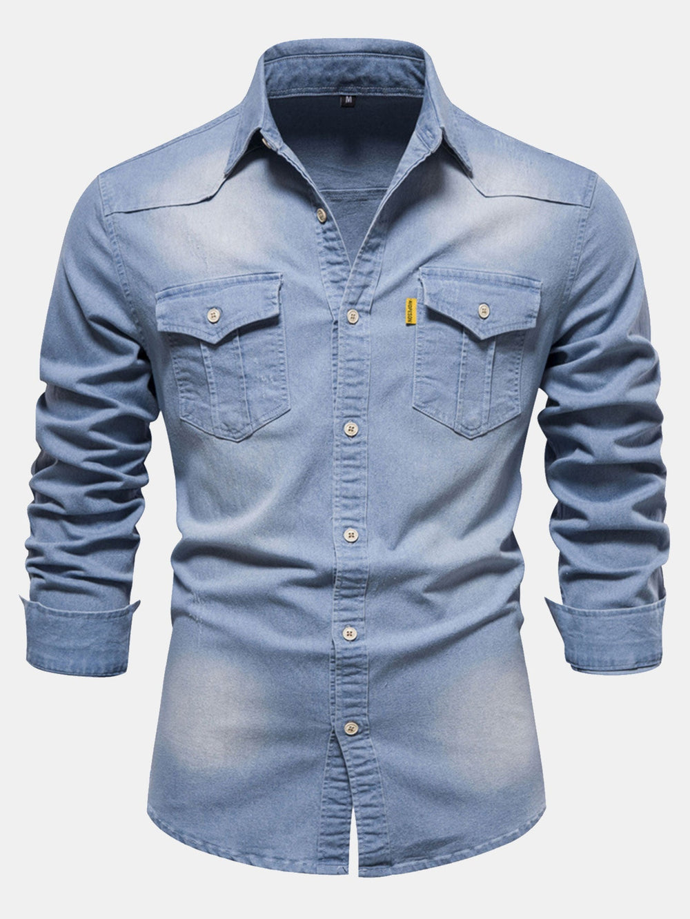 Camisa Vaquera de Mezclilla Lavada con Bolsillos