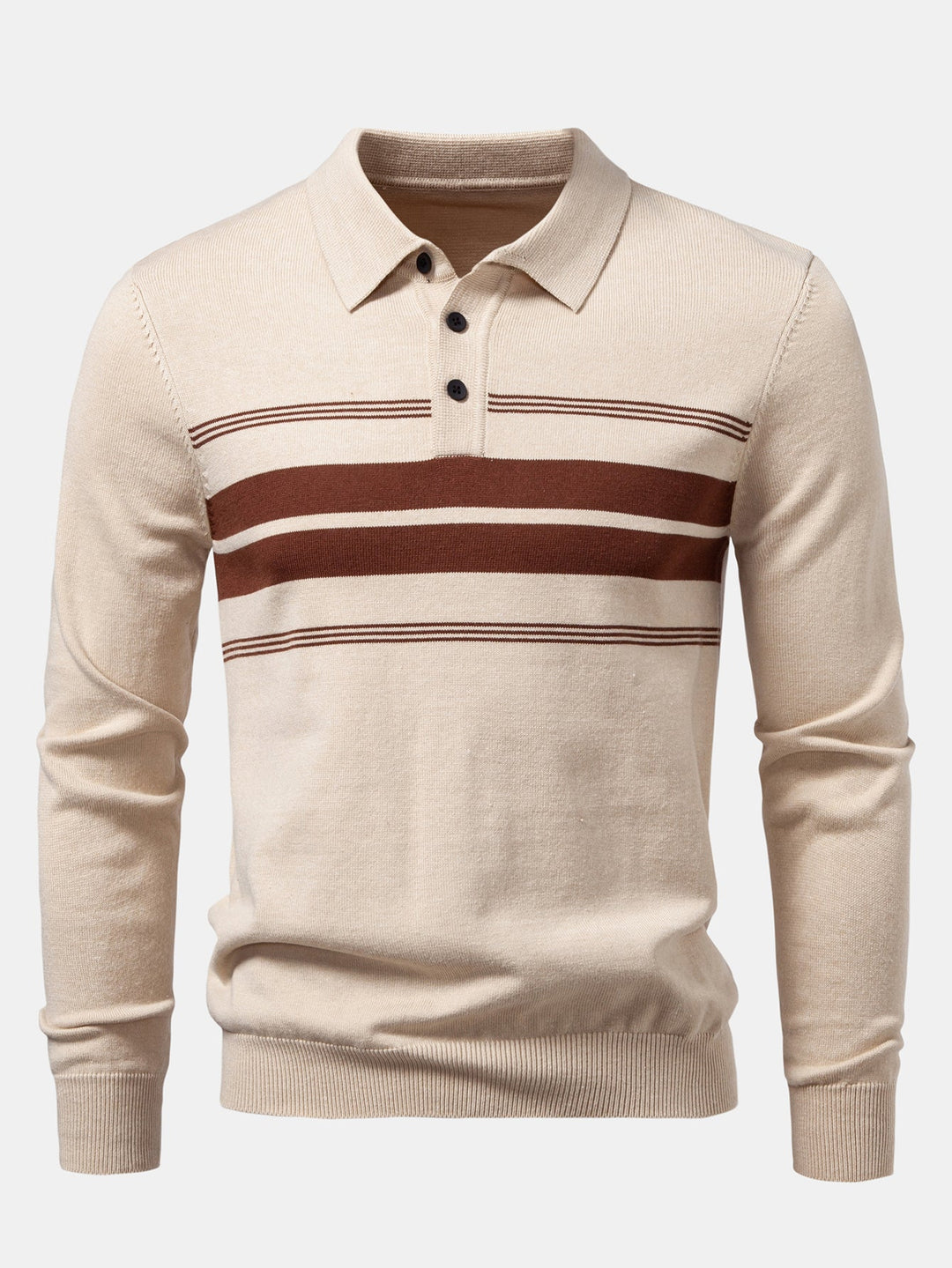 Polo de Punto de Rayas de Manga Larga